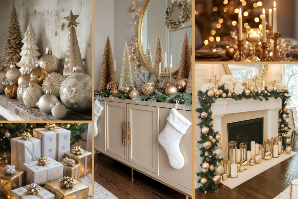 Osobně mám ráda, když se zlatá kombinuje s krémovou nebo sytě červenou barvou. Vytváří to pocit tepla a pohostinosti, což je přesně to, co o svátcích chceme. Představte si zlaté svícny na stole, třpytivé stuhy na darcích a ozdoby, které odražejí světlo svíček.